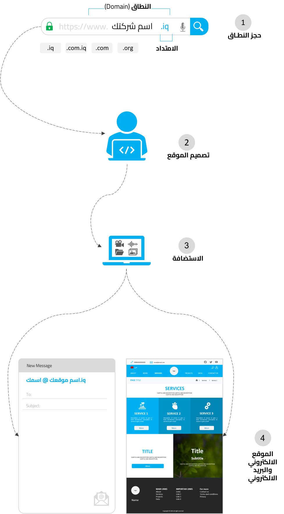 النطاق (Domain) هو الاسم المستخدم للوصول الى موقعك الالكتروني على الانترنت. النطاق: هو الجزء الأخير من النطاق (.iq, .com, .NET, .org) للدلالة على نوع النشاط. يساعدك فريقنا في حجز واختيار اسم النطاق والنطاق المثالي لأعمالك.